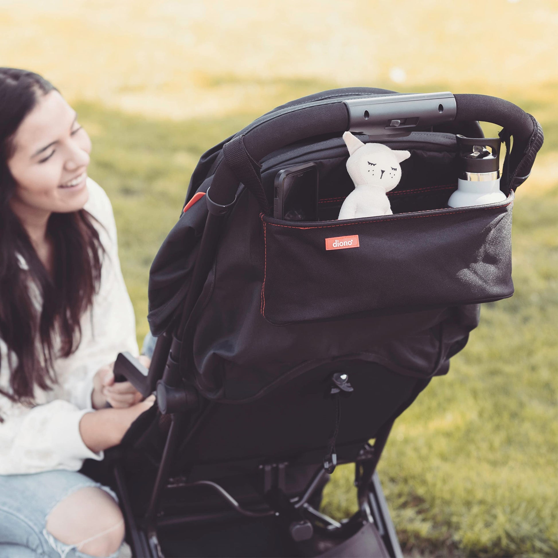 The award winning Diono Buggy Buddy keeps parents' essentials within reach when on the move. Its easy hook and loop attachment and loop fastenings are compatible with most strollers.