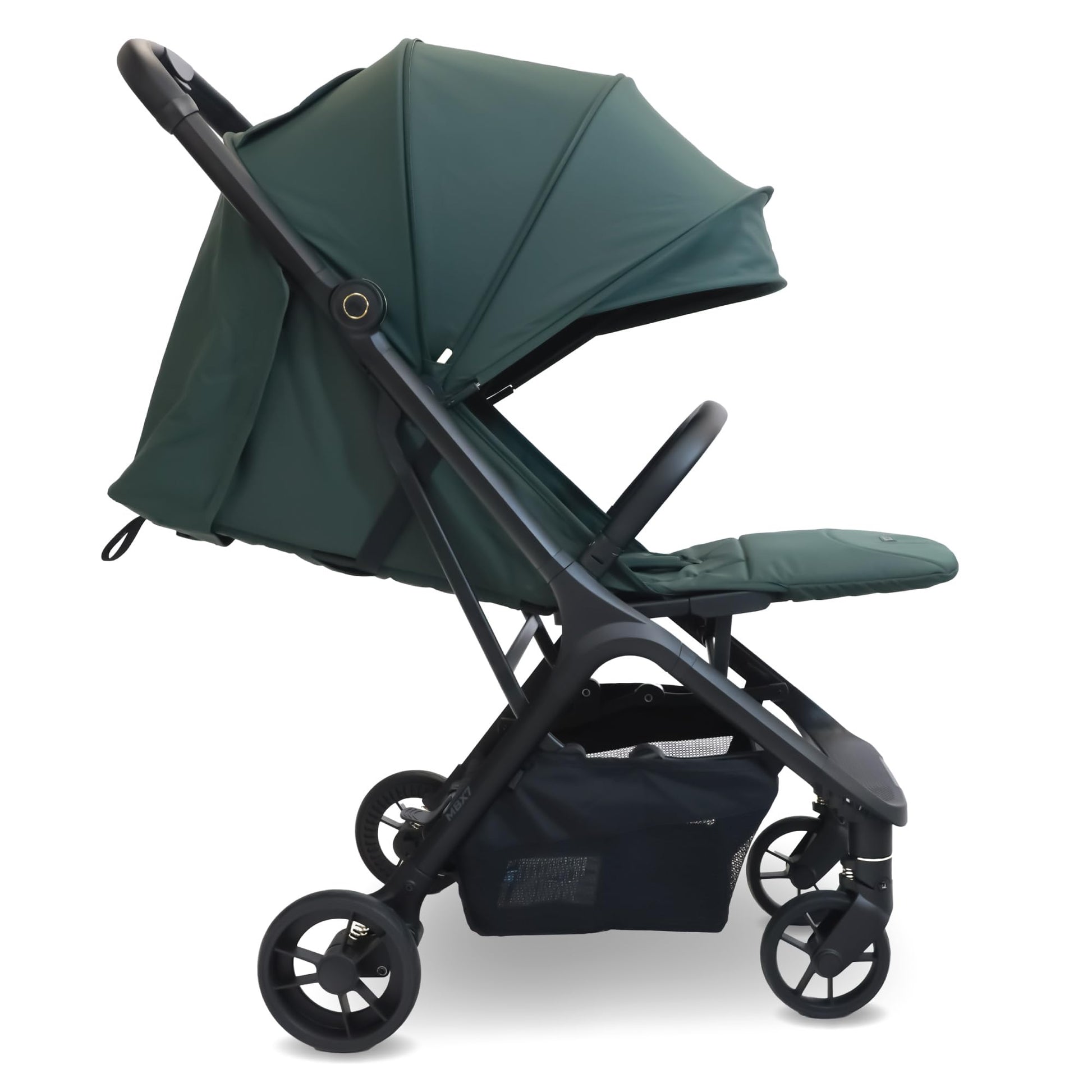 - FEATURE PACKED: Magic auto-fold, quick magnetic buckle, XL UPF50+ canopy, one hand seat recline, puncture proof wheels, all round suspension, large storage basket, adjustable calf support and more! The MBX7 is the complete stroller for any adventure