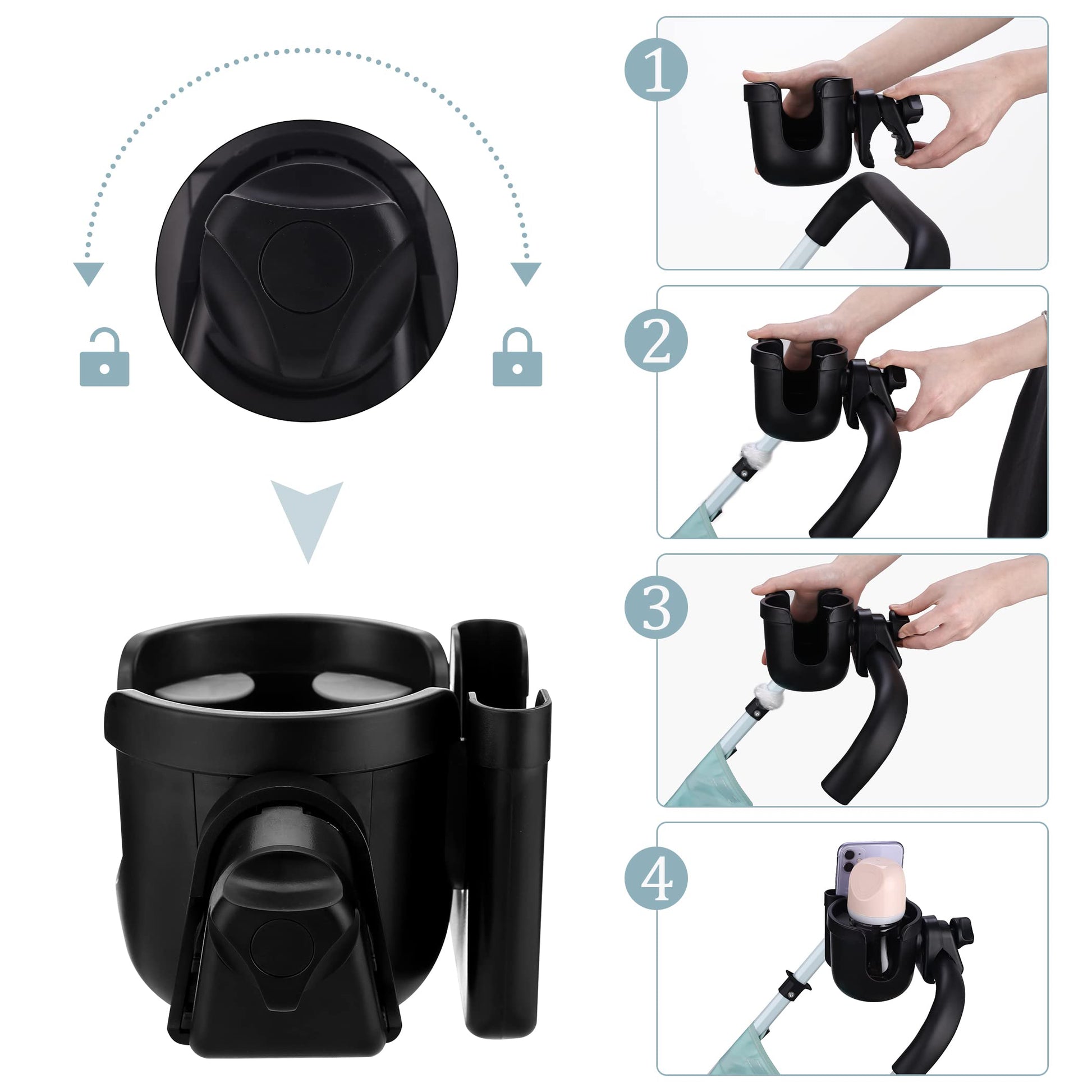 Suranew Stroller Cup Holder with Phone & Bottle Compartment – Universal